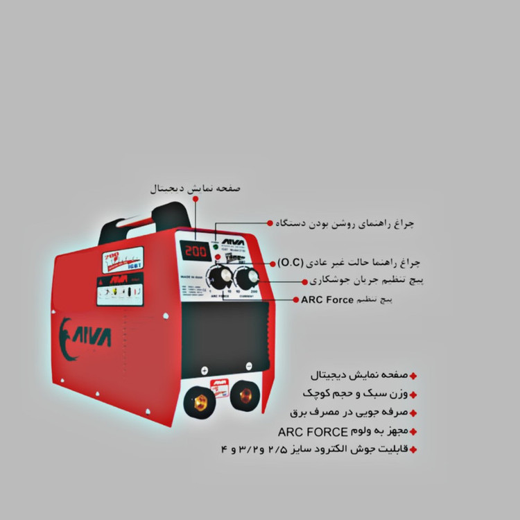 امروزه دستگاههای جوش اینورتر جایگزین دستگاه جوشهای گذشته را گرفته اند و دارای مزایای بهتری هستند. این دستگاه به دلیل داشتن فناوریهای جدید و همچنین به دلیل کم مصرف بودن امروزه بسیار پرکابرد هستند. بعضی از مدل های این دستگاه توانایی اتصال به دو جریان مستقیم و متناوب را دارند. این دستگاهها با مصرف برق کم جریان بسیار بالایی را ایجاد میکنند که دستگاه توانایی تنظیم جریان ولتاژ را به کاربر میدهد. و همچنین جوش با کیفیت تری را ایجاد میکنند. اینورتر جوشکاری Arva ARC 200 مدل 2103 دارای سیستم جوش IGBT میباشد. این دستگاه مجهز به پیچ جریان جوشکاری جهت ایجاد جریان دلخواه و نیز صفحه نمایش دیجیتال جهت نمایش مقدار جریان میباشد. وزن کم و حجم کم این دستگاه کار را بسیار آسان کرده است. این اینورتر مجهز به ولوم ARC FORC میباشد. اینورتر جوشکاری Arva ARC 200 مدل 2103 امکان استفاده از الکترودهای سایز 2٫5 و 3٫2 و 4 را به کاربر میدهد. دستگاه دارای چراغ راهنما و هشداردهنده جهت نمایش حالت غیر عادی(O.C) دستگاه میباشد.
