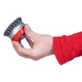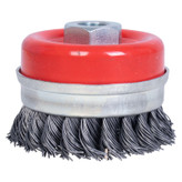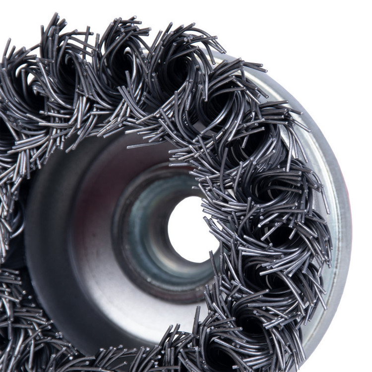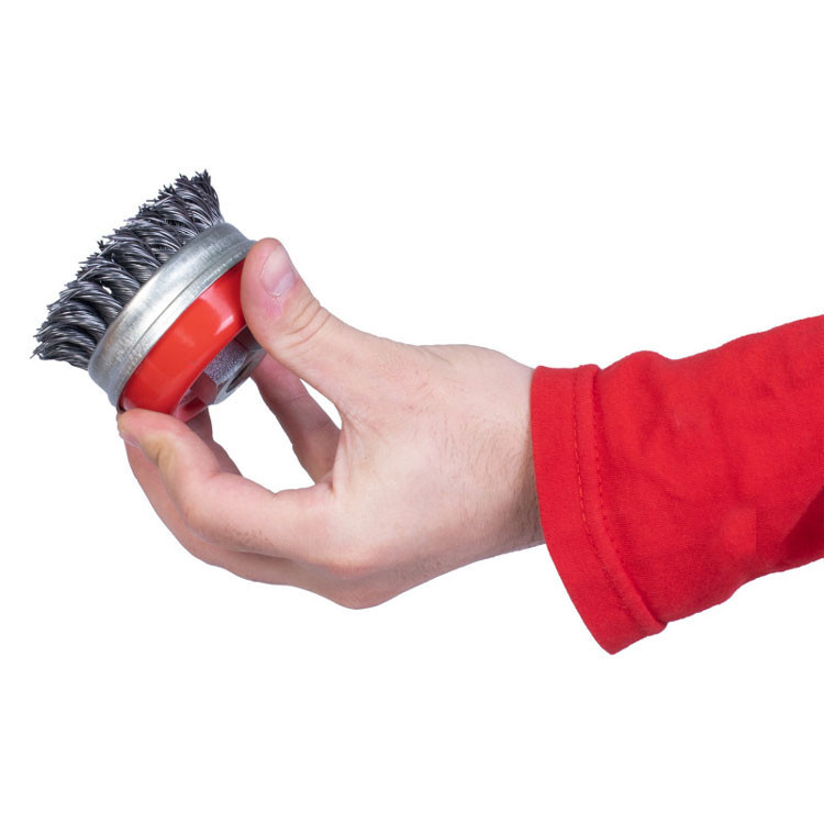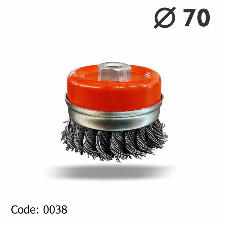 “این نوع برس به شکل کاسه ای تولید شده و به لحاظ داشتن سیم های بافته شده ، یک برس زبر و خشن محسوب می شود و در سایز های استاندارد از قطر 70 الی 125 میلی متر “این نوع برس به شکل کاسه ای تولید شده و به لحاظ داشتن سیم های بافته شده ، یک برس زبر و خشن محسوب می شود و در سایز های استاندارد از قطر 70 الی 125 میلی متر تولید و عرضه می گردد . این نوع برس ها با سیم های فولاد کربن و فولاد زنگ نزن تولید می شوند . برس کاسه ای بافته جهت پلیسه گیری ، براده برداری ، جرم گیری ، رنگ برداری ، زنگ زدایی عمیق ، خش گذاری ، تمیزکاری و … مورد استفاده قرار می گیرد . برس کاسه ای بافته به لحاظ قابلیت نصب بر روی دستگاه های قابل حمل ، مانند فرز برای کار بر روی سطوح بزرگ و ثابت و زوایای غیر قابل دسترسی مناسب می باشد. برس کاسه ای بافته برای کاربردهای خاص روی ماشین های ثابت نیز نصب می گردند . همچنین این برس قابلیت جدا شدن طوقه از برس را دارد تا در صورت اتمام سیم ها حین کار، مجدد سیمی که در زیر طوقه قرار گرفته را میتوان مجدد از آن استفاده کرد.”
