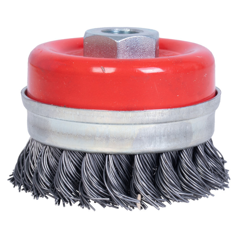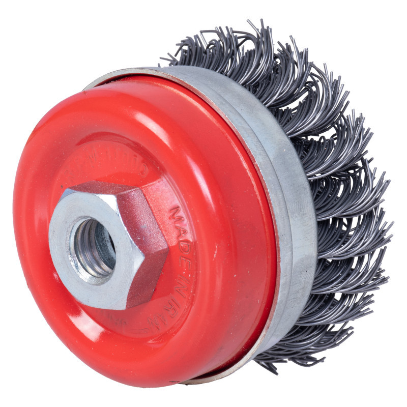 “این نوع برس به شکل کاسه ای تولید شده و به لحاظ داشتن سیم های بافته شده ، یک برس زبر و خشن محسوب می شود و در سایز های استاندارد از قطر 70 الی 125 میلی متر “این نوع برس به شکل کاسه ای تولید شده و به لحاظ داشتن سیم های بافته شده ، یک برس زبر و خشن محسوب می شود و در سایز های استاندارد از قطر 70 الی 125 میلی متر تولید و عرضه می گردد . این نوع برس ها با سیم های فولاد کربن و فولاد زنگ نزن تولید می شوند . برس کاسه ای بافته جهت پلیسه گیری ، براده برداری ، جرم گیری ، رنگ برداری ، زنگ زدایی عمیق ، خش گذاری ، تمیزکاری و … مورد استفاده قرار می گیرد . برس کاسه ای بافته به لحاظ قابلیت نصب بر روی دستگاه های قابل حمل ، مانند فرز برای کار بر روی سطوح بزرگ و ثابت و زوایای غیر قابل دسترسی مناسب می باشد. برس کاسه ای بافته برای کاربردهای خاص روی ماشین های ثابت نیز نصب می گردند . همچنین این برس قابلیت جدا شدن طوقه از برس را دارد تا در صورت اتمام سیم ها حین کار، مجدد سیمی که در زیر طوقه قرار گرفته را میتوان مجدد از آن استفاده کرد.”